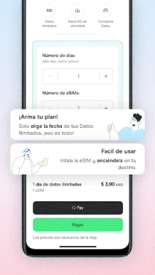 Adquirir y gestionar tu eSIM con Holafly es una experiencia pensada para tu comodidad. Desde la aplicación Holafly, puedes seleccionar tu plan ideal, realizar la compra y recibir tu SIM digital por correo electrónico en cuestión de segundos. La activación es intuitiva, con guías paso a paso, videos y contenido offline integrados en la app para una configuración sin esfuerzo. Tus datos solo comienzan a consumirse una vez que llegas a tu destino, y puedes monitorear en tiempo real tu uso, la activación y la vigencia de tus eSIMs, e incluso recargarlas con facilidad. Compatible con la mayoría de los smartphones con tecnología eSIM 4G y 5G, como el Samsung Galaxy S23, Oppo Find X5 o Xiaomi 13, Holafly asegura que tu dispositivo siempre estará conectado. Y si necesitas asistencia, nuestro equipo de soporte multilingüe está disponible 24/7 con solo un toque en la aplicación, listo para resolver cualquier consulta.