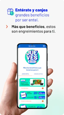 **Entel** va más allá de la gestión personal, acercándote a nuestra red de servicio cuando lo necesites. Ubica nuestras tiendas físicas con facilidad, planifica tu visita y asegura tu atención personalizada solicitando una cita directamente desde la aplicación. Mantente siempre conectado e informado sobre nuestra cobertura de red, asegurándote de disfrutar la mejor experiencia dondequiera que vayas. Recibe las últimas novedades, promociones exclusivas y ofertas especiales pensadas solo para ti, directamente en tu dispositivo, para que nunca te pierdas nada.