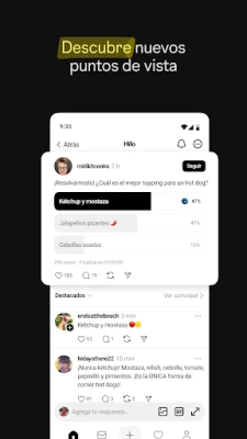 En Threads, tu voz tiene un espacio ilimitado. Comparte tus puntos de vista sobre lanzamientos musicales, análisis cinematográficos, eventos deportivos, tendencias de moda, lanzamientos de productos o cualquier tema que te apasione, iniciando un nuevo hilo que invite a la interacción. Si lo prefieres, navega entre las reflexiones de tus creadores favoritos y líderes de opinión. Aquí descubrirás inspiración, obtendrás respuestas a tus preguntas y enriquecerás tu conocimiento a través de debates colaborativos y profundos.